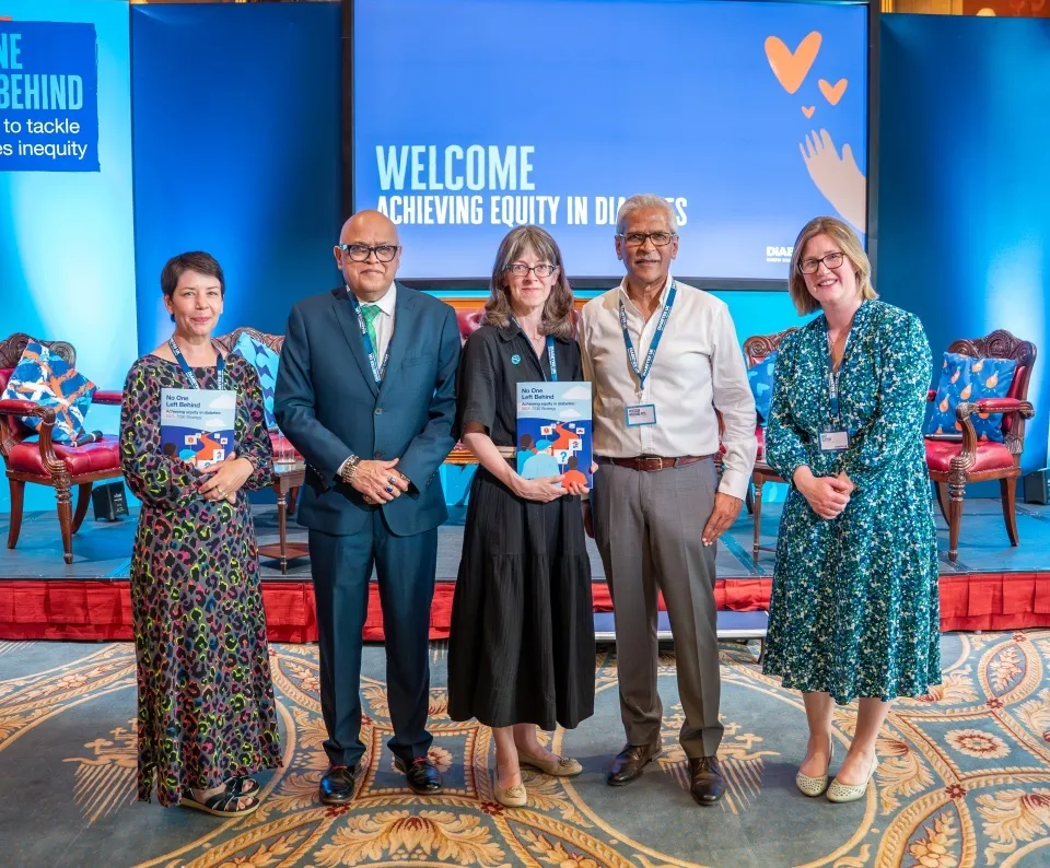 Top image: From left: Anna Morris, Assistant Director of Research Strategy and Partnership at Diabetes UK, Prof Wasim Hanif, Independent Chair of Diabetes UK’s Tackling Inequities Advisory Group, Colette Marshall, Chief Executive at Diabetes UK, Professor Mahendra Patel, Director of the Centre for Research Equity at the University of Oxford, and Aoife Slattery, Tackling Inequality Engagement Lead at Diabetes UK.