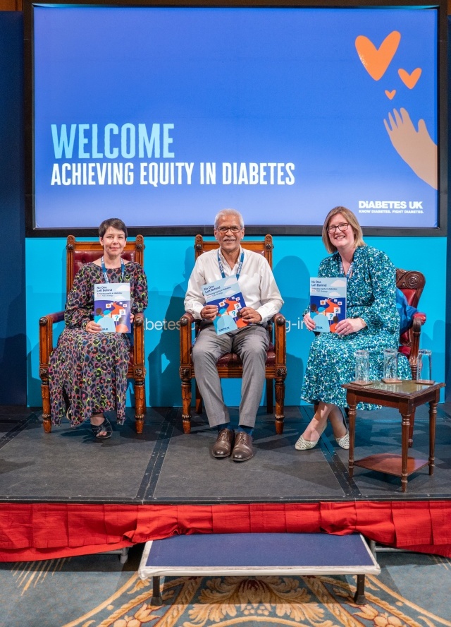 Image in article: From left: Anna Morris, Assistant Director of Research Strategy and Partnership at Diabetes UK, Professor Mahendra Patel, Director of the Centre for Research Equity at the University of Oxford, and Aoife Slattery, Tackling Inequality Engagement Lead at Diabetes UK.